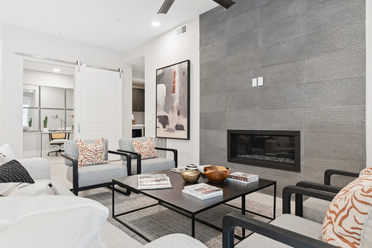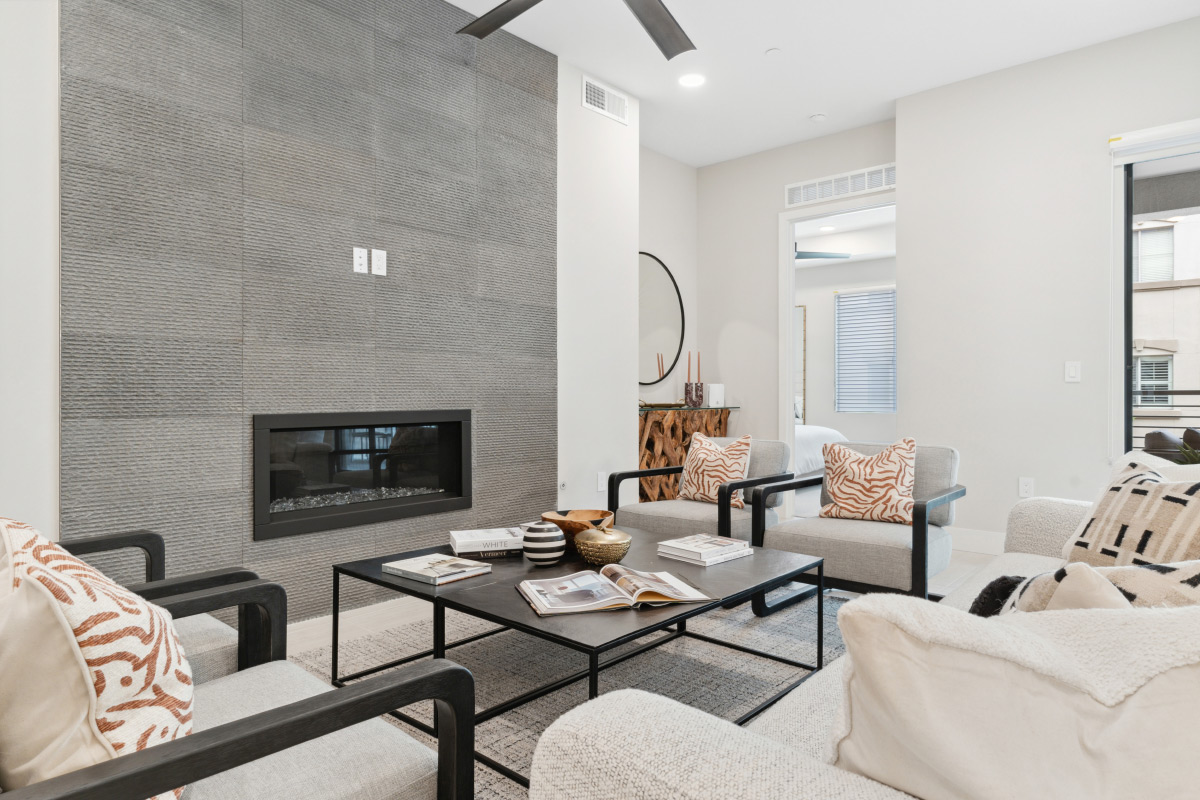 Our Dior design features 1,781 square feet of living space, 2 bedrooms, 2.5 bathrooms, and a 351-square-foot expanded patio. Dior boasts 10-foot ceilings in the kitchen and living room, with a penthouse option of 11-foot ceilings and expansive transom windows. Your kitchen features premium appliances, including double built-in ovens, a wine cooler, and a natural gas 5-burner cooktop. These are paired with our upgraded quartz countertops and raised panel cabinets, elevating your cooking space.